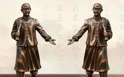 玻璃鋼仿銅雕塑是在雕塑造型制作完成后,利用仿銅漆和彩繪工藝處理雕塑表面,最終形成類似于黃銅、紫銅、青銅等銅色效果,常見有仿銅浮雕、仿銅人物、仿銅佛像等等。